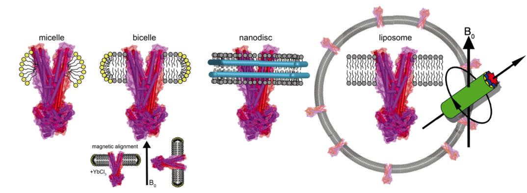 Our research is dedicated to the elucidation of functional mechanisms of membrane proteins. Ongoing projects focus on ABC transporters, retinal proteins, GPCRs as well as lipid-regulating enzymes. In addition, we investigate the role of lipid-protein interactions and factors affecting membrane order, dynamics and polymorphism. Our experimental approch is primarly based on solid-state NMR by whch membrane proteins can be analysed directly within lipids bilayers, which is essential for many mechanistic questions.