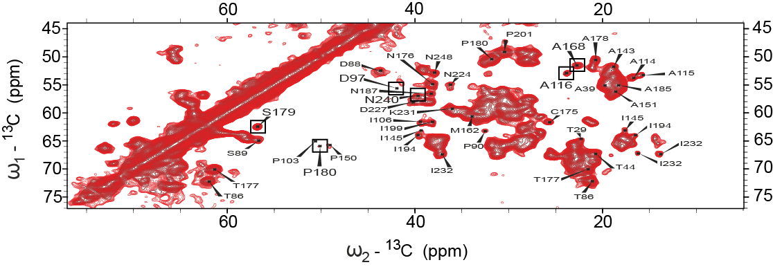 We apply solid-state NMR in order to understand how lipids interact with each other, with drugs and with other membrane components, how lipid phase changes occur, how lipids interact with proteins and how proteins alter the membrane composition. For example, diacylglycerol kinase phosphorylates AK to yield PA at the expense of ATP. Time resolved solid-state NMR enables to resolve the full enzymatic process at the membrane interface, while high-resolution studies together with complete resonance assignment and DNP enable to resolve key steps during the catalytic cycle.